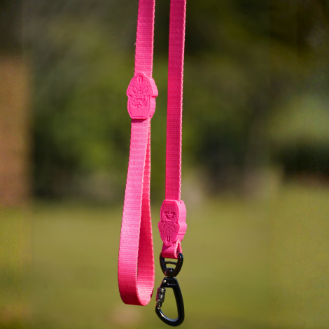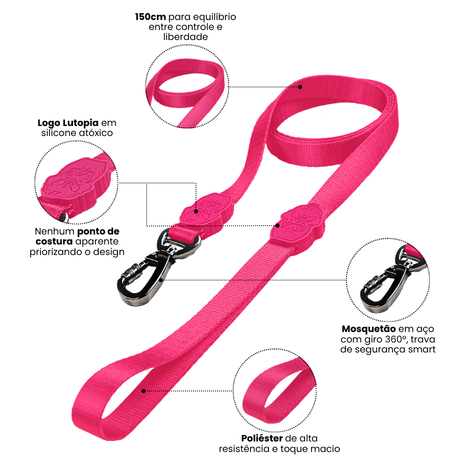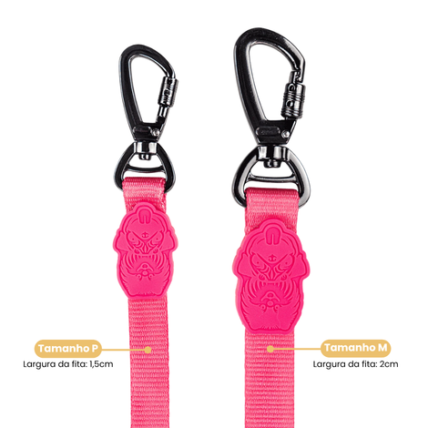 - Mosquetão com trava de segurança e rotação 360° para evitar torções.